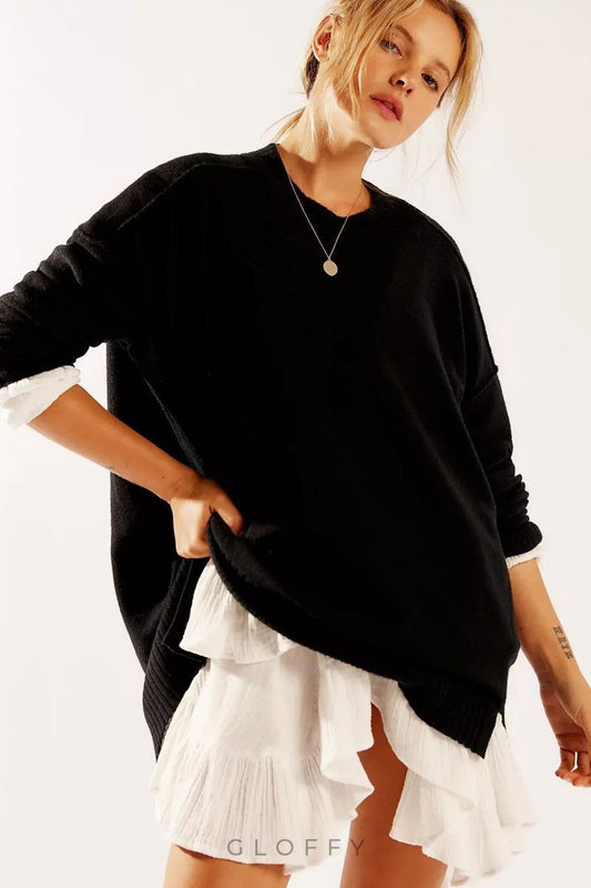 Stella Triko Kolsuz Yırtmaç Detaylı Elbise Siyah