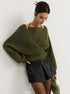 Oversize V Yakalı Kolları Balon Triko Kazak – Haki