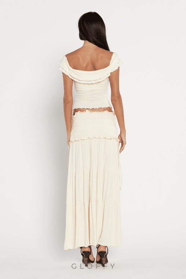 Bonnie Omuz Açık Volanlı Uzun Elbise