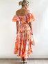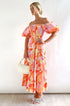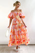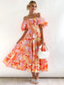 Andrea Baskılı Omuzu Açık Puf Kol Katlı Maxi Elbise