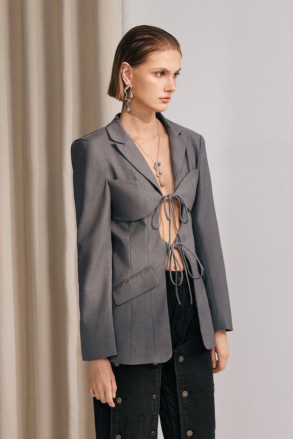 Arlette Bağcıklı Dekolteli Ceket ile gardırobunuza şık ve çok yönlü bir dokunuş ekleyin. Siyah, gri veya kahverengi seçenekleriyle sunulan bu ceket, trend kesik detayları ve önünde bağcık tasarımı ile dikkat çeker. Her türlü etkinlik için mükemmel olan bu ceket, modayı yakından takip eden bireyler için vazgeçilmez bir parçadır.