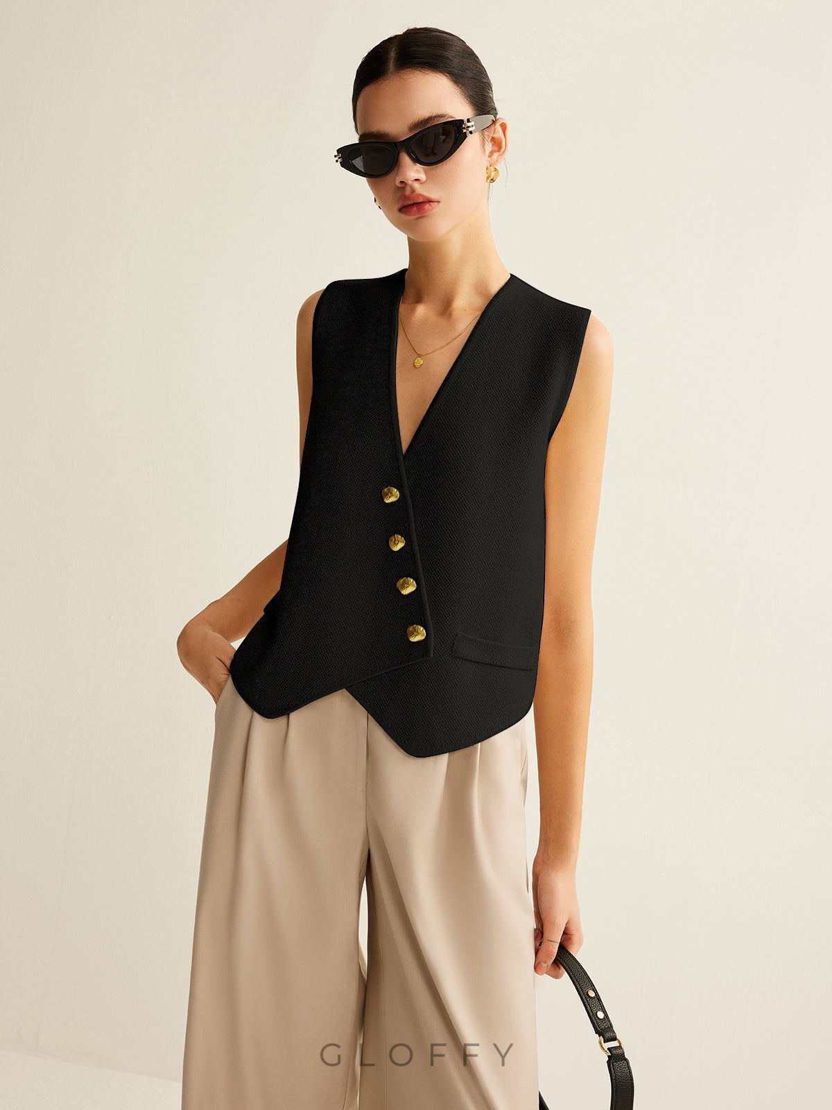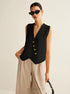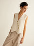 Asimetrik Düğmeli Triko Yelek – Ekru