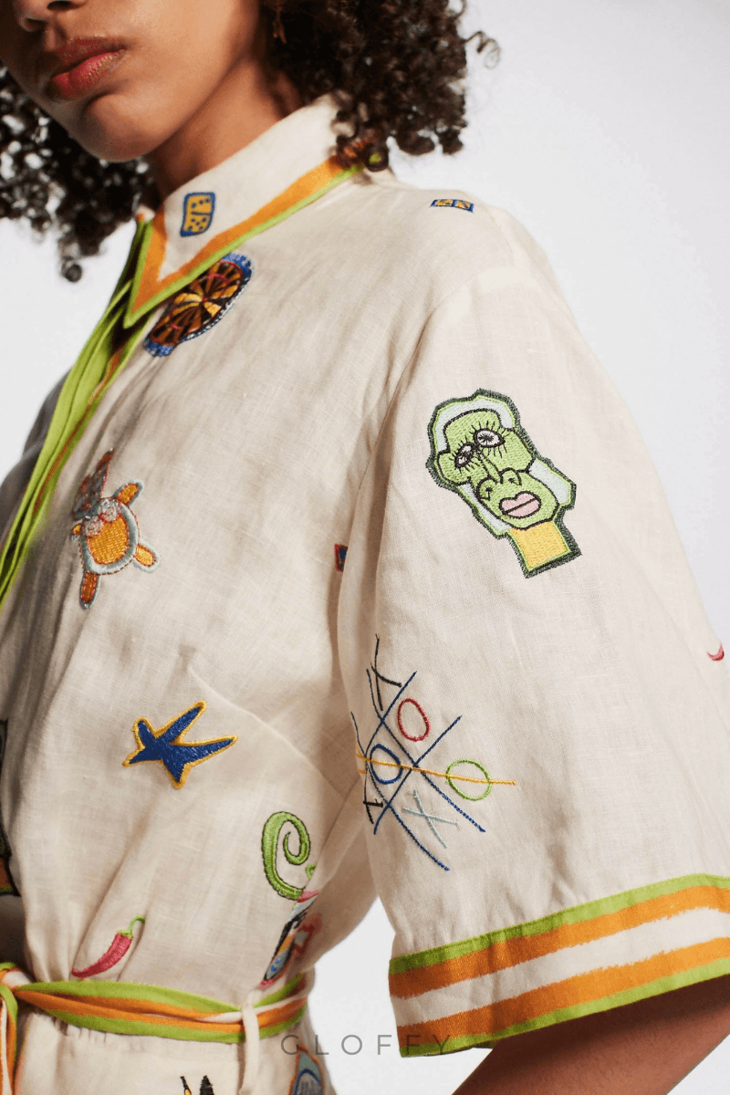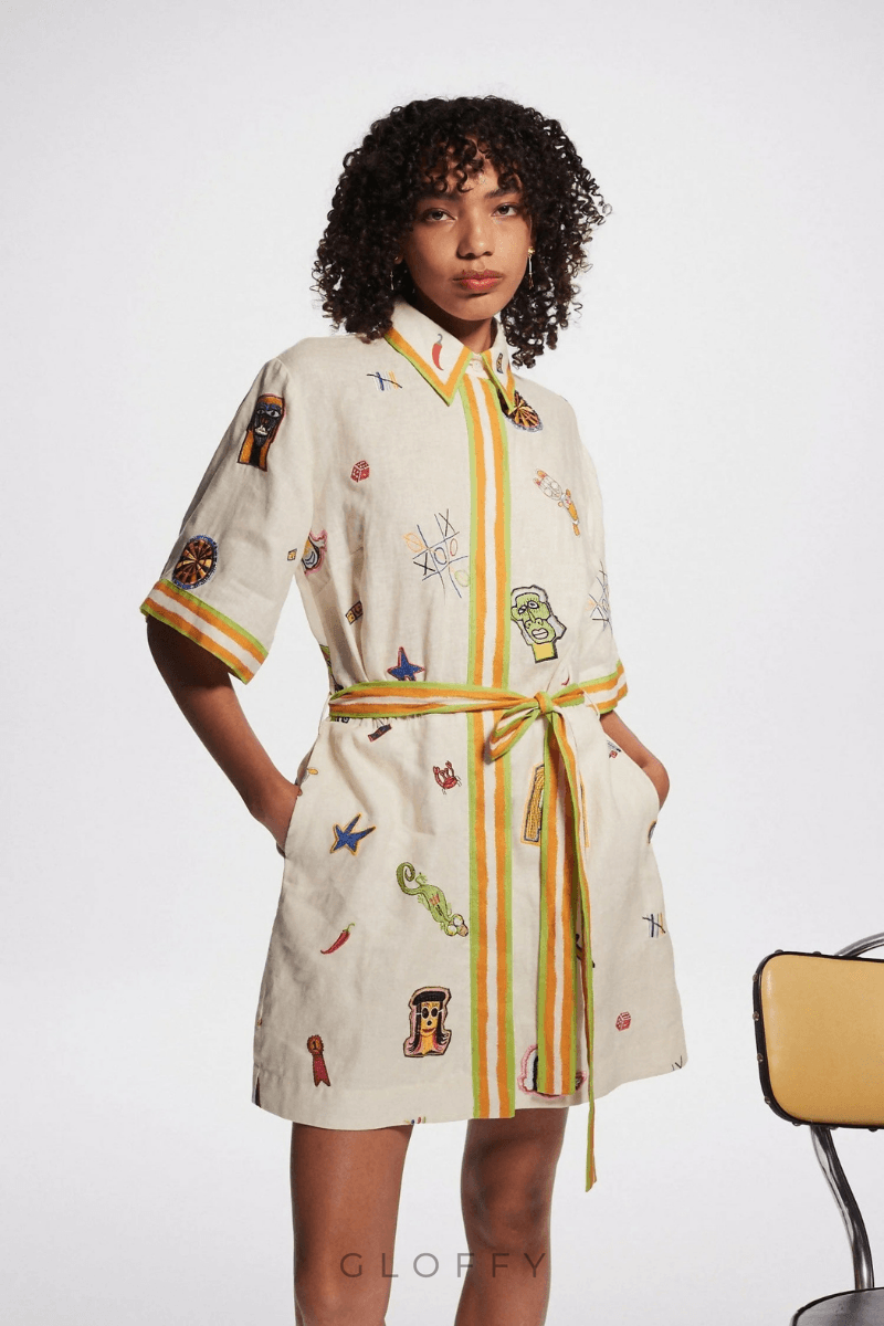 Aurelie Kısa Kollu İşlemeli Mini Elbise