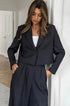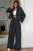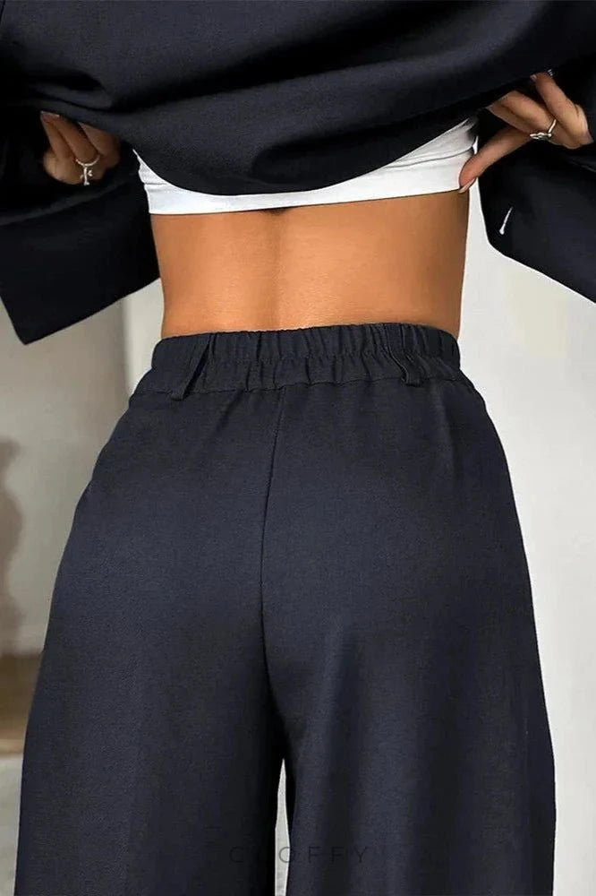 Bu klasik iki parçalı sette, çentikli yakalı ve uzun kollu bir blazer ceket ile yüksek belli elastik pantolonlar üstün konfor sunar. Her iki parçanın rahat kesimi, şık ama rahat bir hava sunarak gündelik geziler ve hatta iş ortamları için mükemmel hale getiriyor.