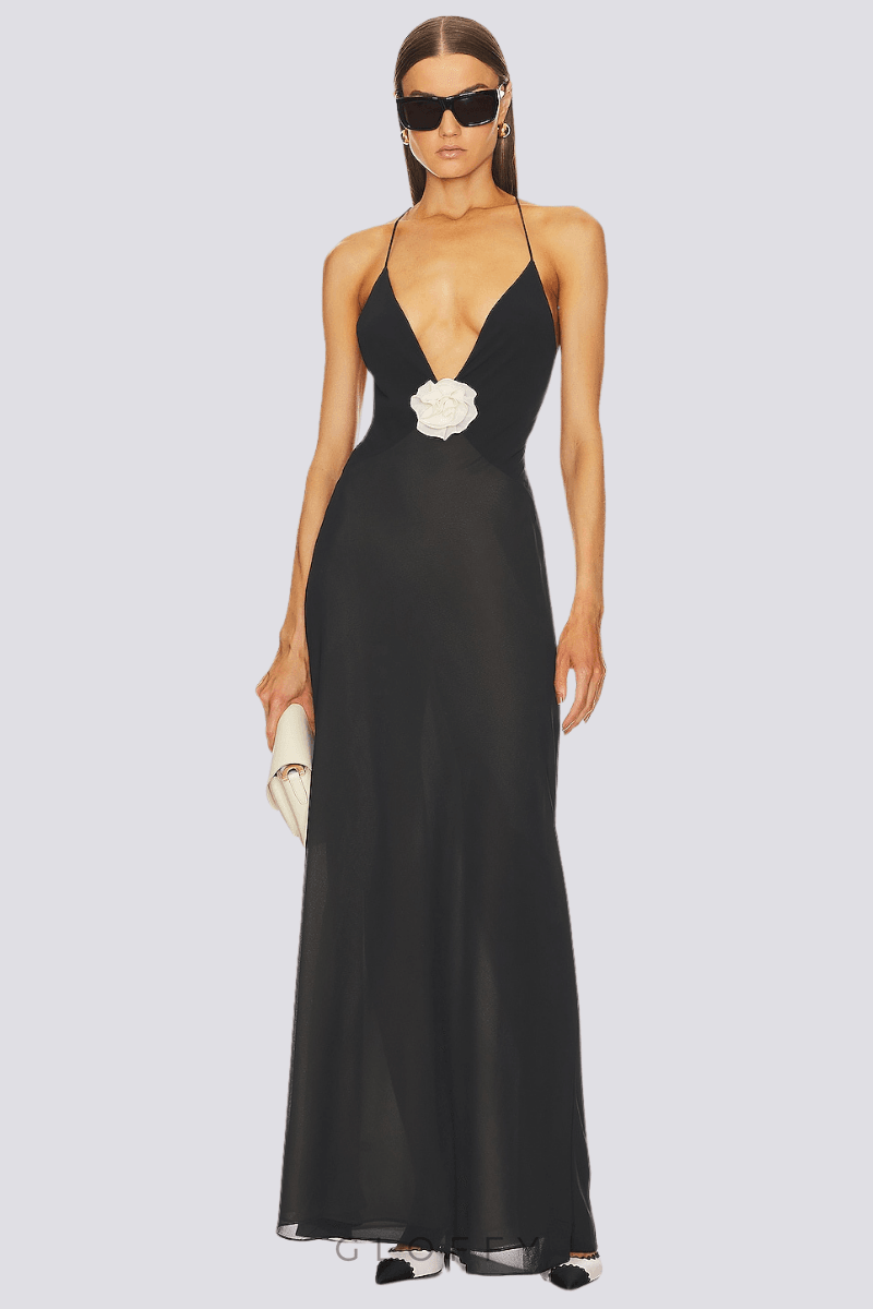 Ava Spagetti Askılı Derin Yırtmaçlı Maxi Elbise