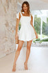 Kontrast katlamayla zenginleştirilmiş sofistike kare yakalı mini elbisemizle tarzınızı yükseltin. Kalın kravat askıları şıklık ve rahatlık katarken, görünmez arka fermuar modern bir görünüm sağlar.