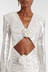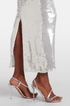 Bu çarpıcı tek omuzlu orta uzunlukta elbise, cazibe ve incelik yayan seksi, sırtı açık bir tasarıma sahiptir. Çapraz yaka ve anvelop tarzdaki korsaj silüetinizi güzel bir şekilde geliştirirken, parıldayan payetler ışığı yakalayarak sizi her akşam etkinliğinde ilgi odağı haline getiriyor.