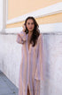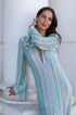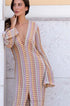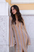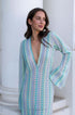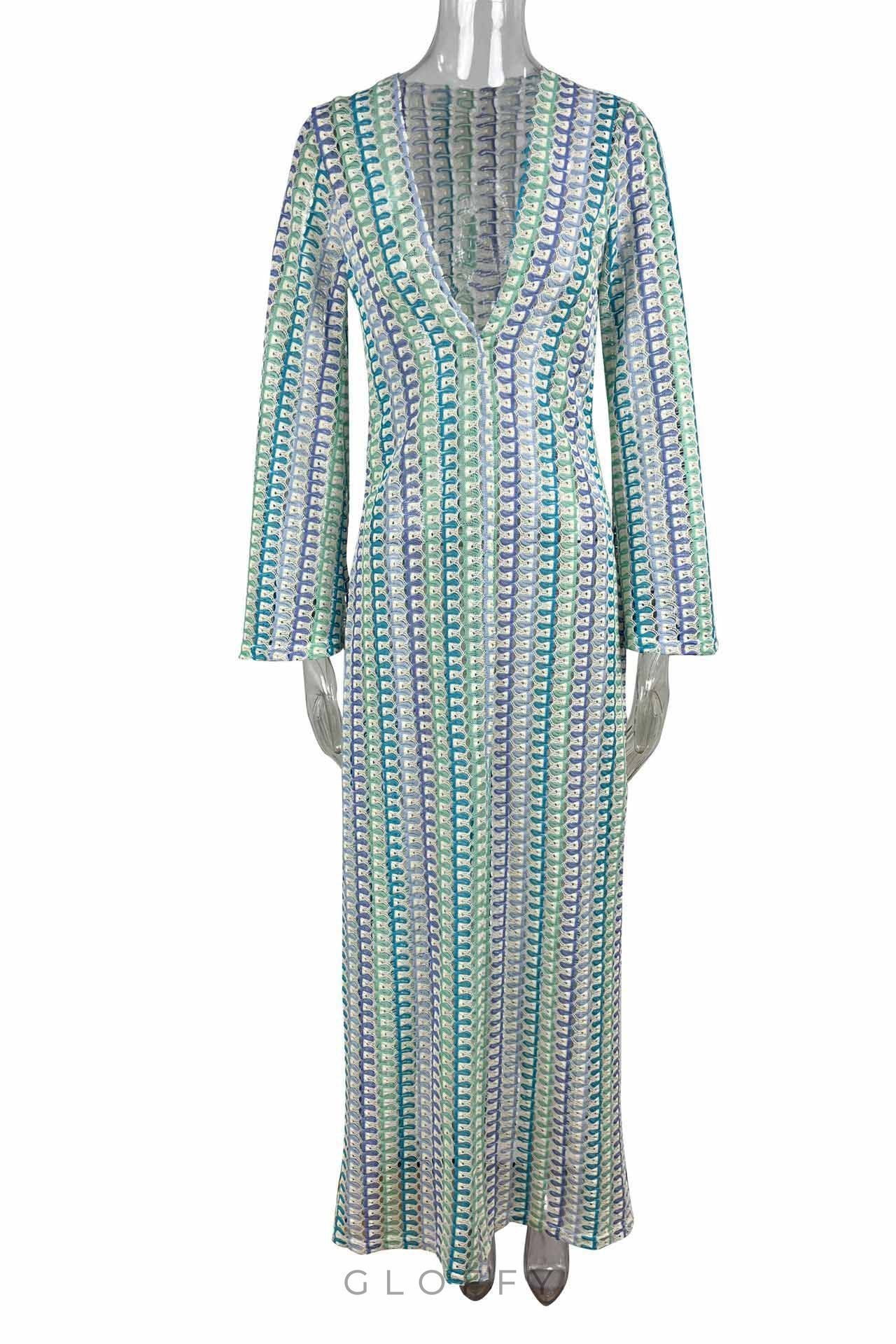 Boho tarzı tığ işi örgü elbiselerimiz ile keyifli bir tatil havasına kaçışın. Butiğimizdeki bu tatil amaçlı maksi elbise, tığ işi örgü üzerine renkli dikey dalgalı çizgilerle büyüleyici tavus kuşu benzeri bir etki sergiliyor. Yarı şeffaf kumaş, havadar ve kaygısız bir his sunar; güneşlenmek veya plaj esintisinin tadını çıkarmak için idealdir. Göz alıcı dekolteli, geniş uzun kollu ve uzun elbise kesimli bu kıyafet, tatillerin kaygısız özünü özetliyor, kadınlara zahmetsizce şık ve neşeli bir kombin sunarak sizi şık bir kaçamağın katıksız keyfine kapılmaya davet ediyor.