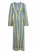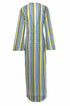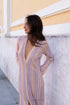Boho V Yaka Çan Kol Dalgalı Çizgili Tığ İşi Plaj Tatili Maxi Elbise