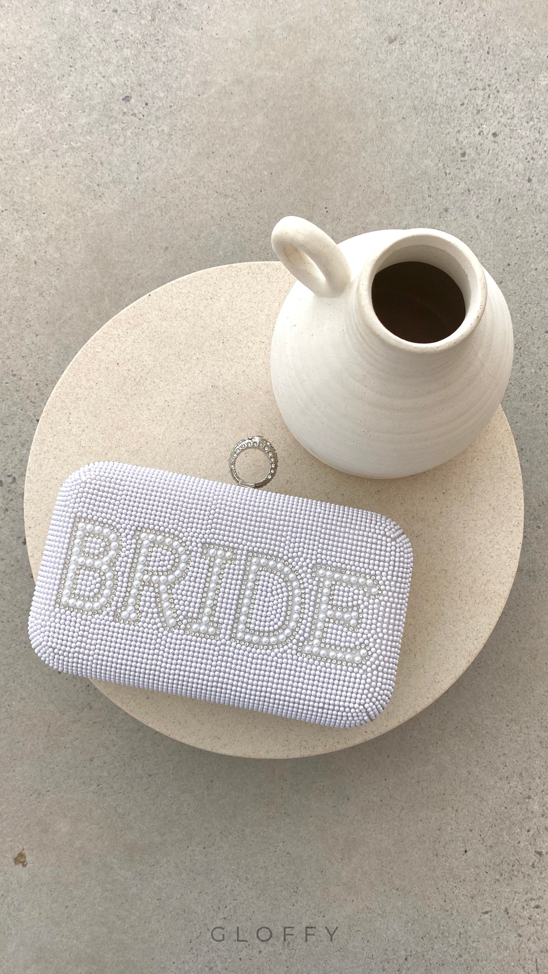 okalı kapatma ve çıkarılabilir zincir kayışıyla her durum için çok yönlülük sunar. Bir tarafı lüks inci boncuklu dokuyu sergilerken diğer tarafı ışıltılı elmas 'Gelin' detaylarıyla süslenerek düğünler veya zarif etkinlikler için ideal bir seçim haline geliyor.