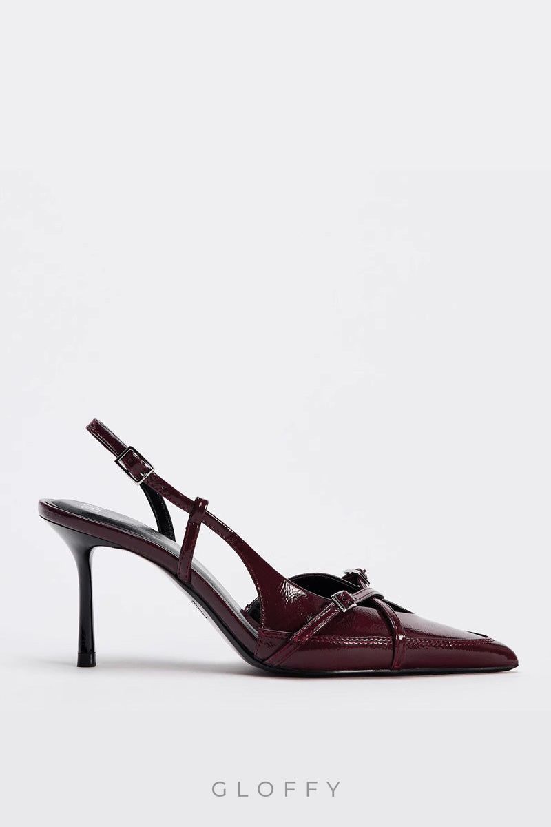 - Tasarım: Toka askılı ve yandan kesik tasarımlı, sivri uçlu katır ayakkabısı