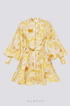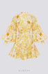 - Tasarım: Baskılı tasarımlı, belden bağlamalı, uzun kollu kısa elbise