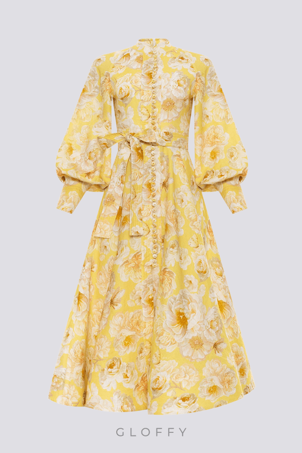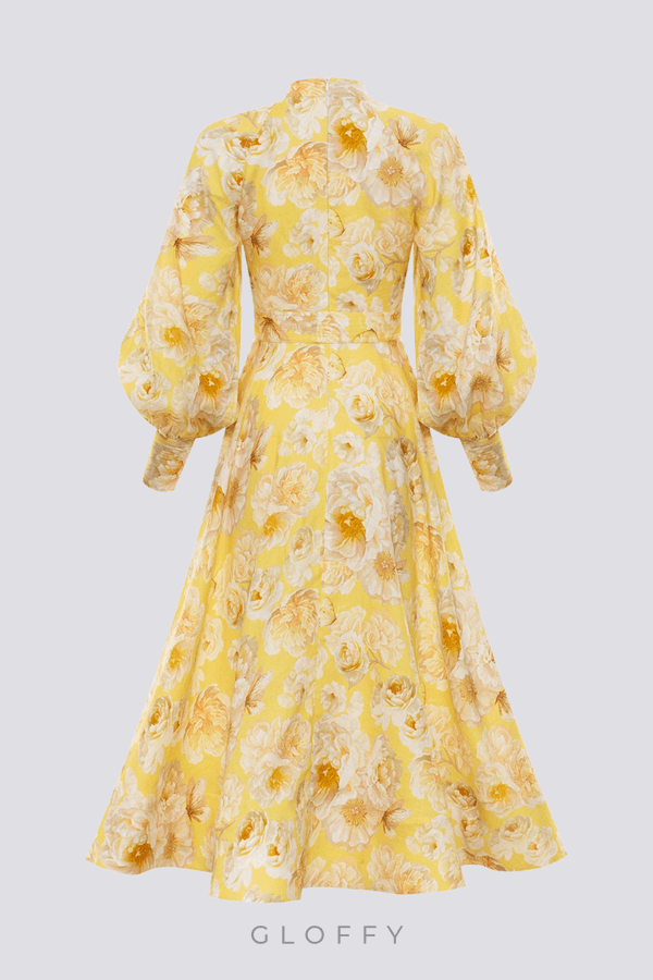 Cécilie Balon Kol Çiçekli Maxi Elbise