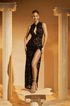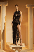 - Tasarım: Dantel kesimli ve derin yırtmaçlı kolsuz bedene oturan elbise
