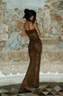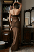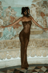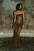 Claudine Straplez Kıvrımlı Uzun Elbise Kahverengi