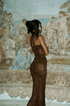 - Tasarım: Sırtı açık, balık etekli, straplez bedene oturan elbise