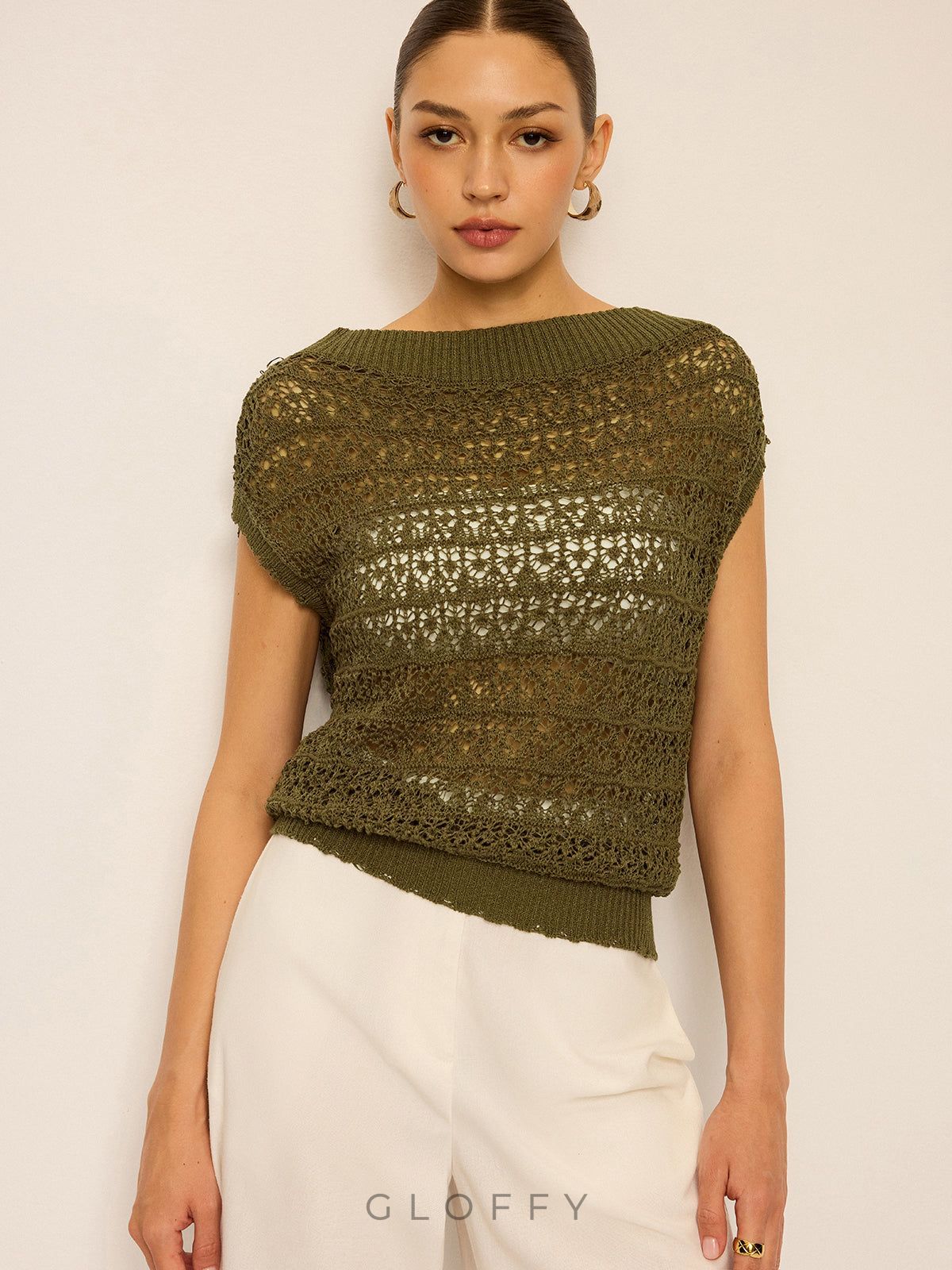 Dantel Örgü Kayık Yaka Triko Bluz – Haki