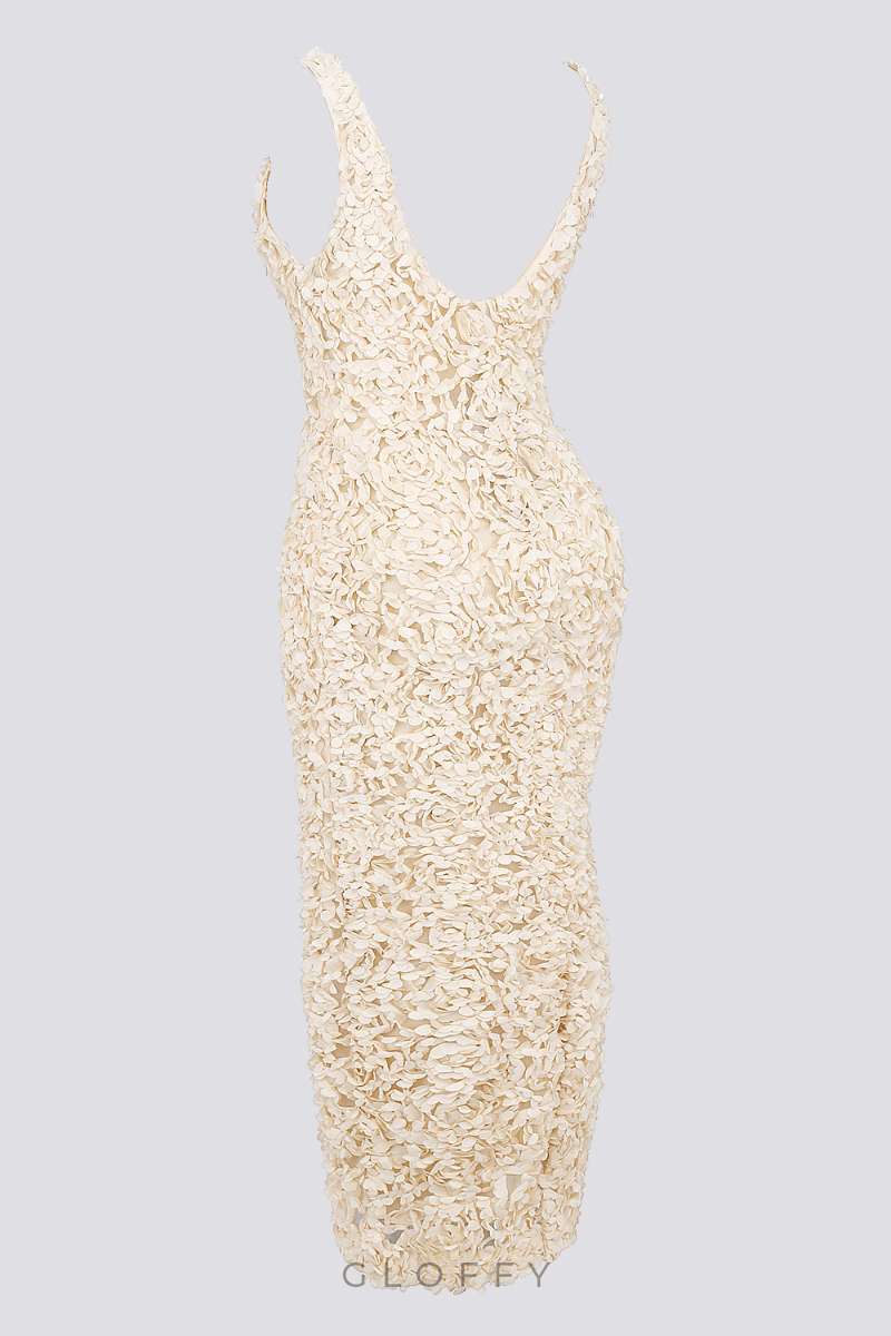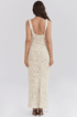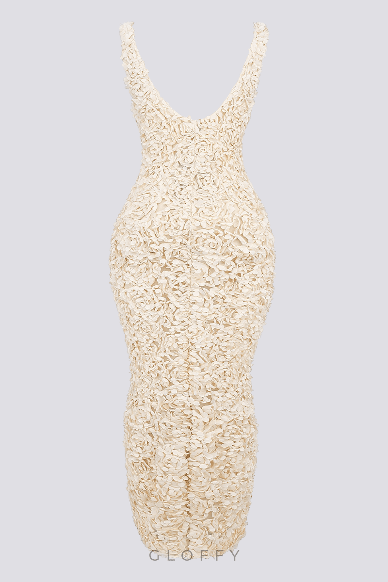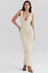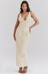Cyprine Derin Yaka Sırtı Açık Uzun Elbise