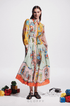 - Tasarım: desenli, önü tek sıra düğmeli, beli bağcıklı elbise
