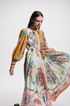 Uzun fener kollu ve eğlenceli bir grafiti baskısına sahip olup, onu her gardırop için dikkat çekici bir parça haline getiriyor. Bağcıklı bel figürünüzü vurgularken, dökümlü A kesim etek zarafet ve hareket katıyor.