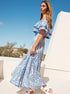 Dolly İşlemeli Dantel Düşük Omuz A Kesim Flare Midi Elbise