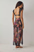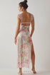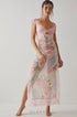 Elma Çiçek Baskılı Kesik File Maxi Slip Elbise