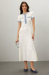 Elma Yuvarlak Yaka Örme Midi Gömlek Elbise