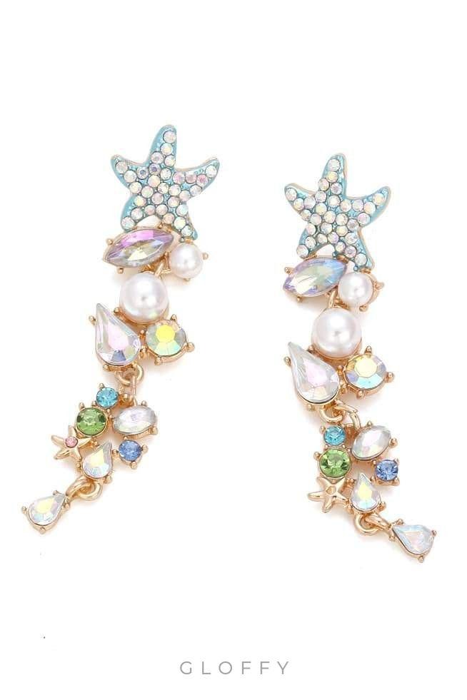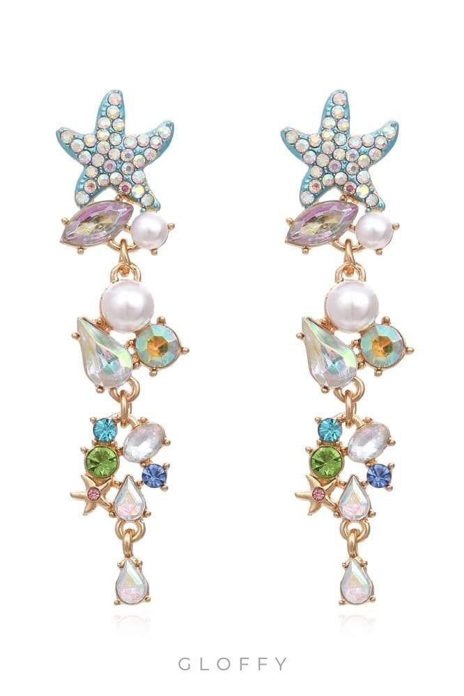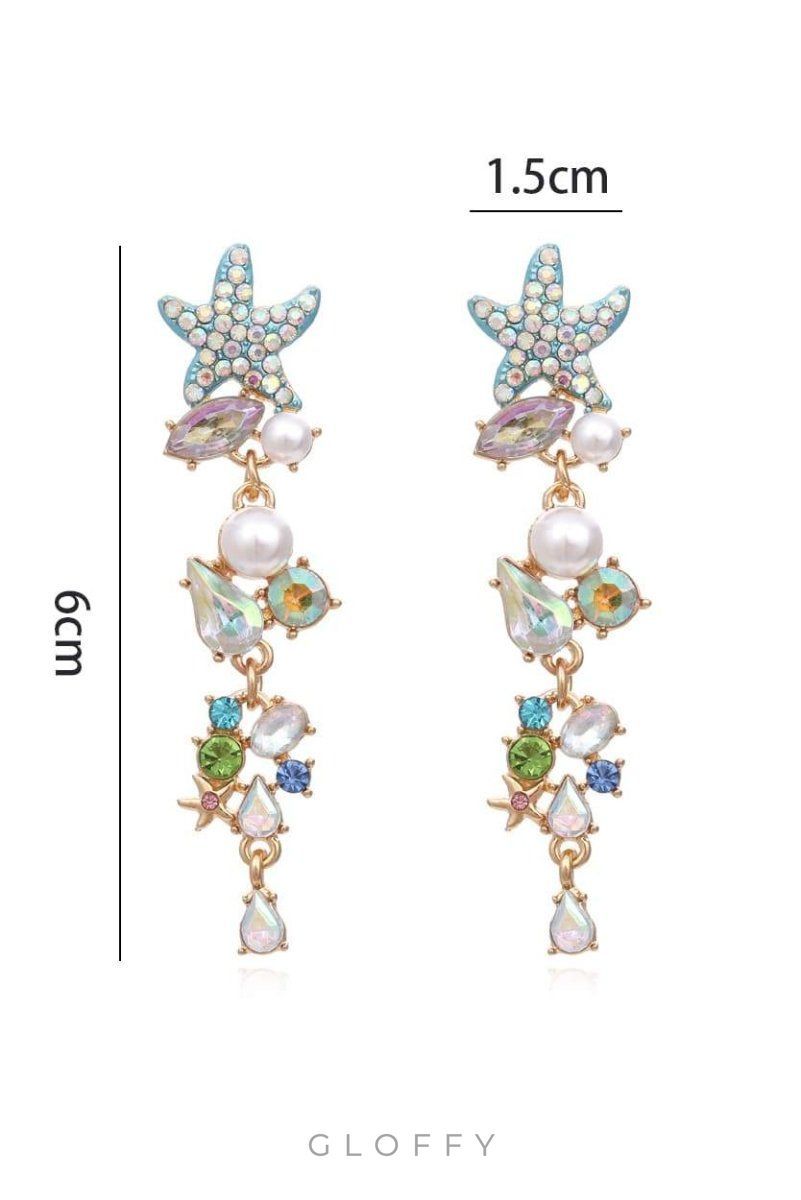 Emaye Kristal İnci Deniz Yıldızı Damla Küpe