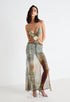 Orta derecede esnek baskılı fileden üretilen bu elbise, mükemmel bir uyum ve rahat hareket sağlar. Sahil partileri veya görkemli etkinlikler için mükemmel olan bu ürün, sandaletler veya bantlı topuklu ayakkabılarla güzel bir şekilde eşleşiyor. Bağcıklı açıklık ayarlanabilir bir uyum sağlar. Bedeninize sadık kalarak mükemmel uyumu bulmak ve unutulmaz bir izlenim bırakmak için beden tablomuza bakın.
