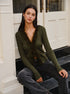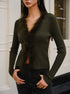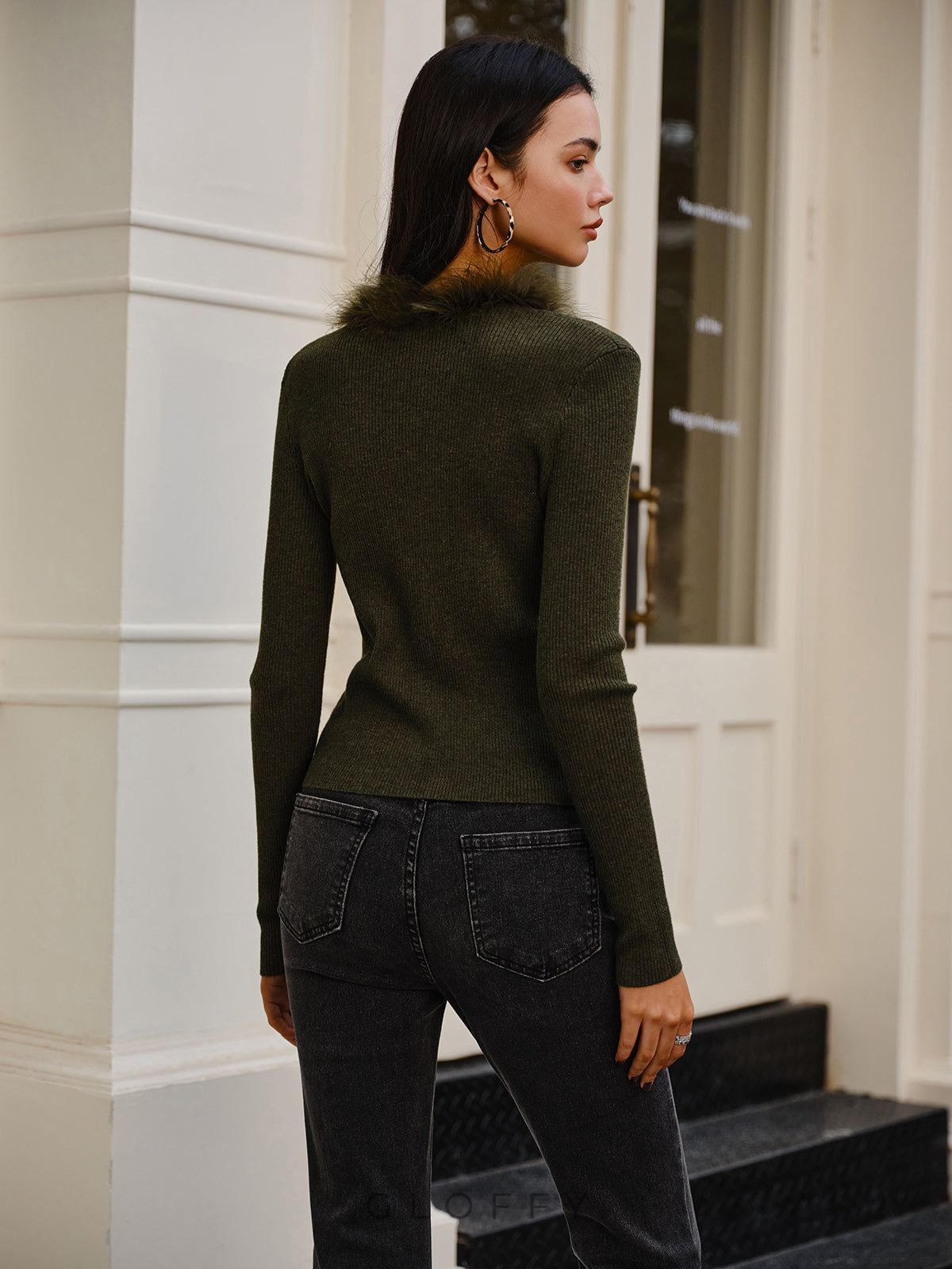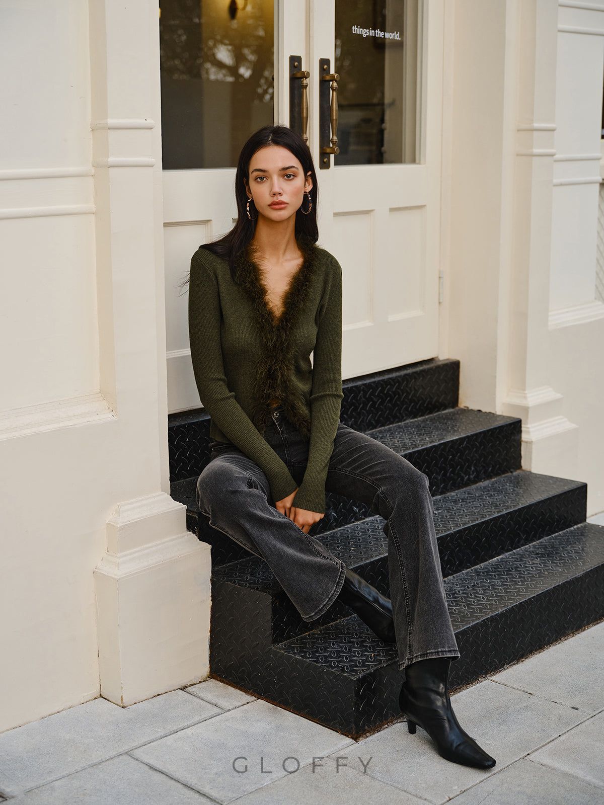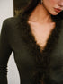 Tüy Detaylı V Yaka İnce Triko Hırka – Haki
