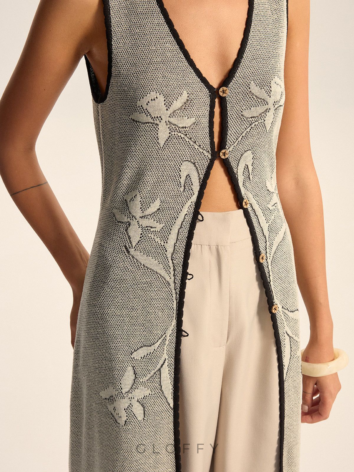 Çiçek Desenli V Yaka Düğmeli Uzun Süveter, şık ve modern tasarımıyla günlük ve özel anlar için ideal bir seçimdir. İnce dokuma kumaştan üretilmiş olan bu süveter, v yaka kesimi ve yanlarda zarif çiçek desenleriyle dikkat çeker. Düğmeli ön kapaması sayesinde farklı kombin seçeneklerine uyum sağlar ve rahat kullanım sunar. Özellikle bahar ve yaz aylarında hafif ve nefes alabilir yapısıyla konforlu bir giyim deneyimi sağlar.