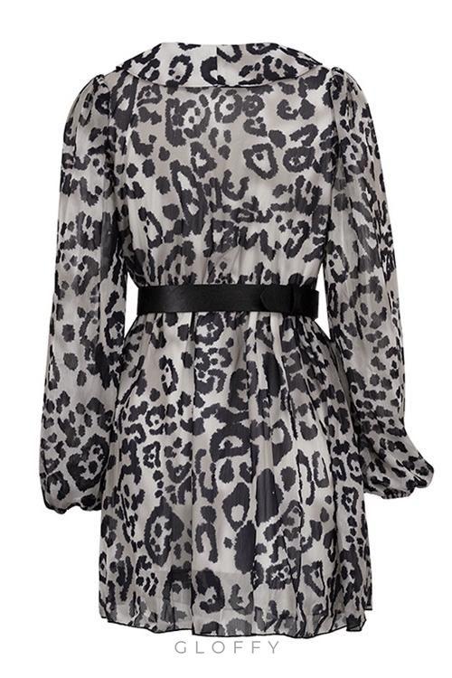 Gail Baskılı V Yaka Kemerli Şifon Mini Elbise