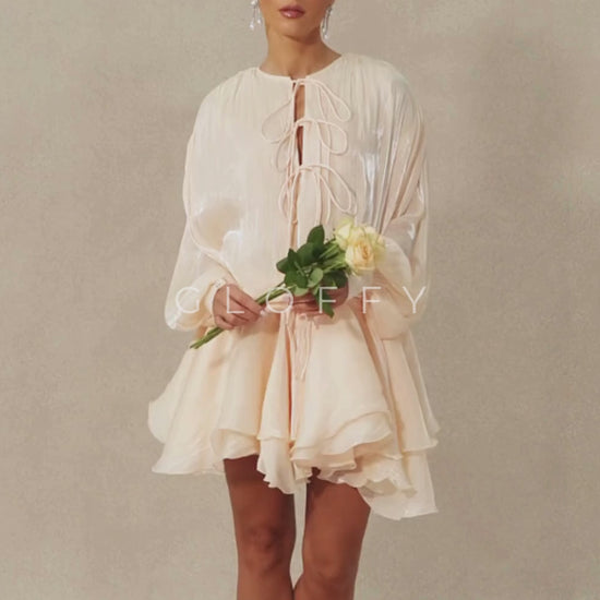 Gloffy Drapeli Volanlı Pileli Mini Elbise