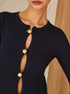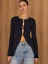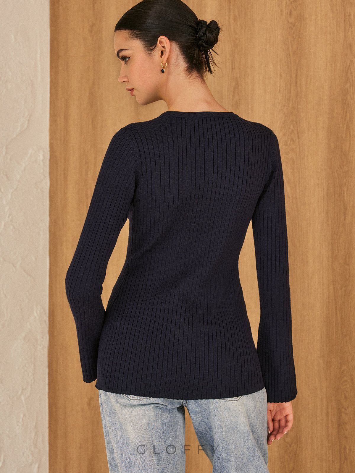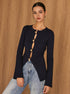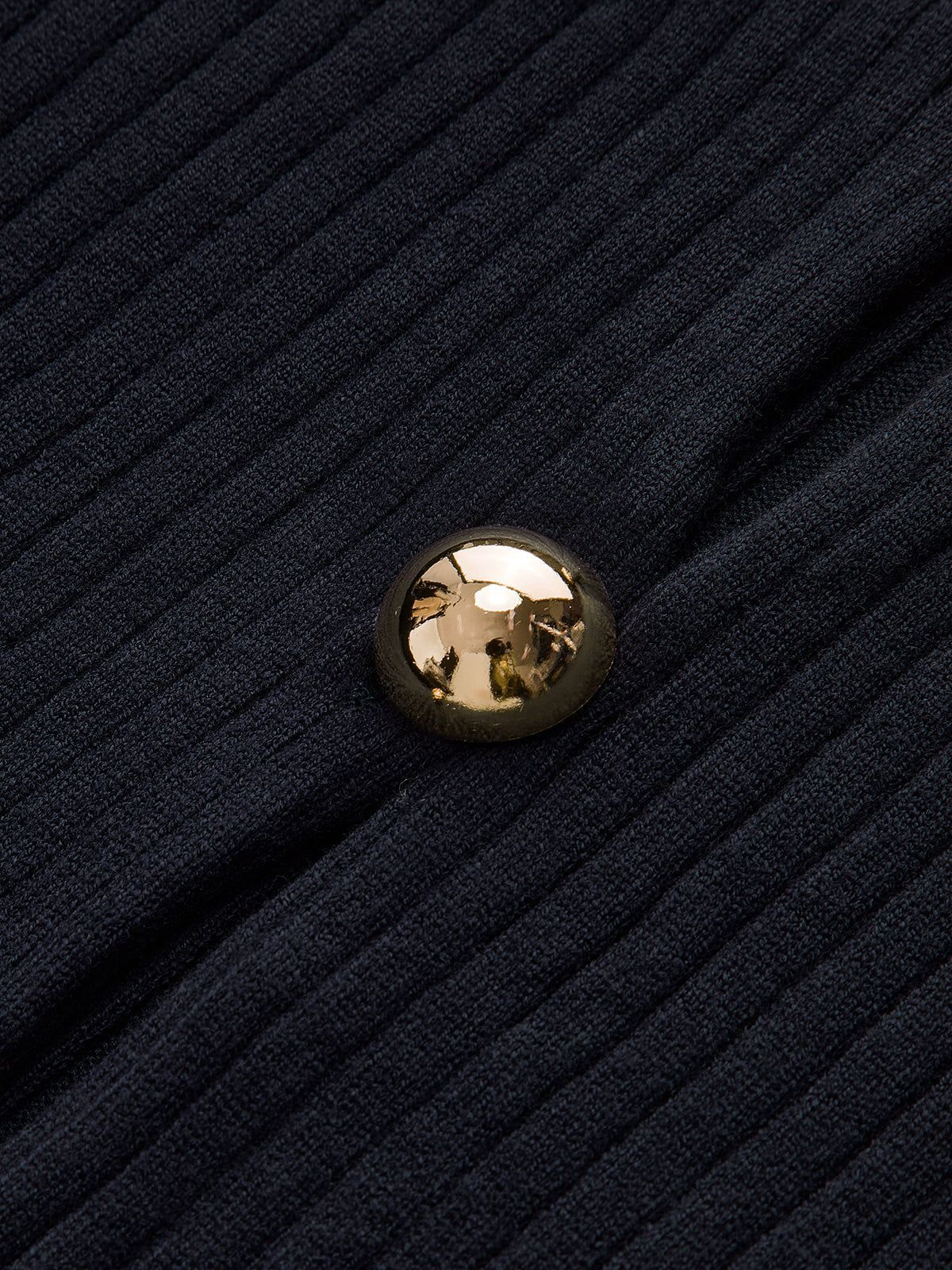 Düğmeli Fitilli Triko Bluz – Lacivert