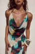 Boyundan Bağlamalı Resort Tarzı Baskılı Maxi Elbise