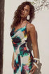 Bu sırtı açık kıyafetle şık ve rahat kalın. askılı. tatilden ilham alan baskılı füzyon elbise AyçiçeğiHalo®.