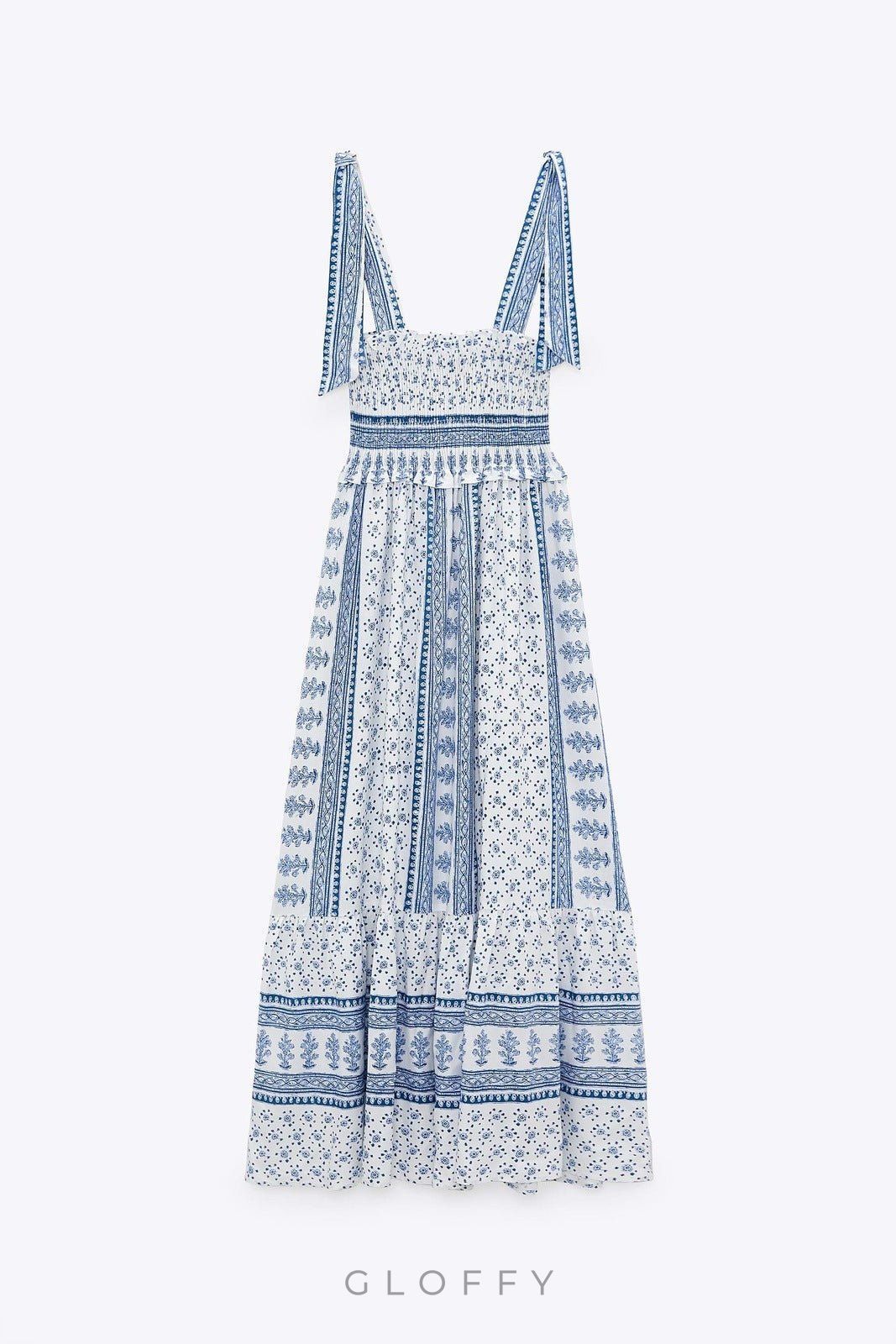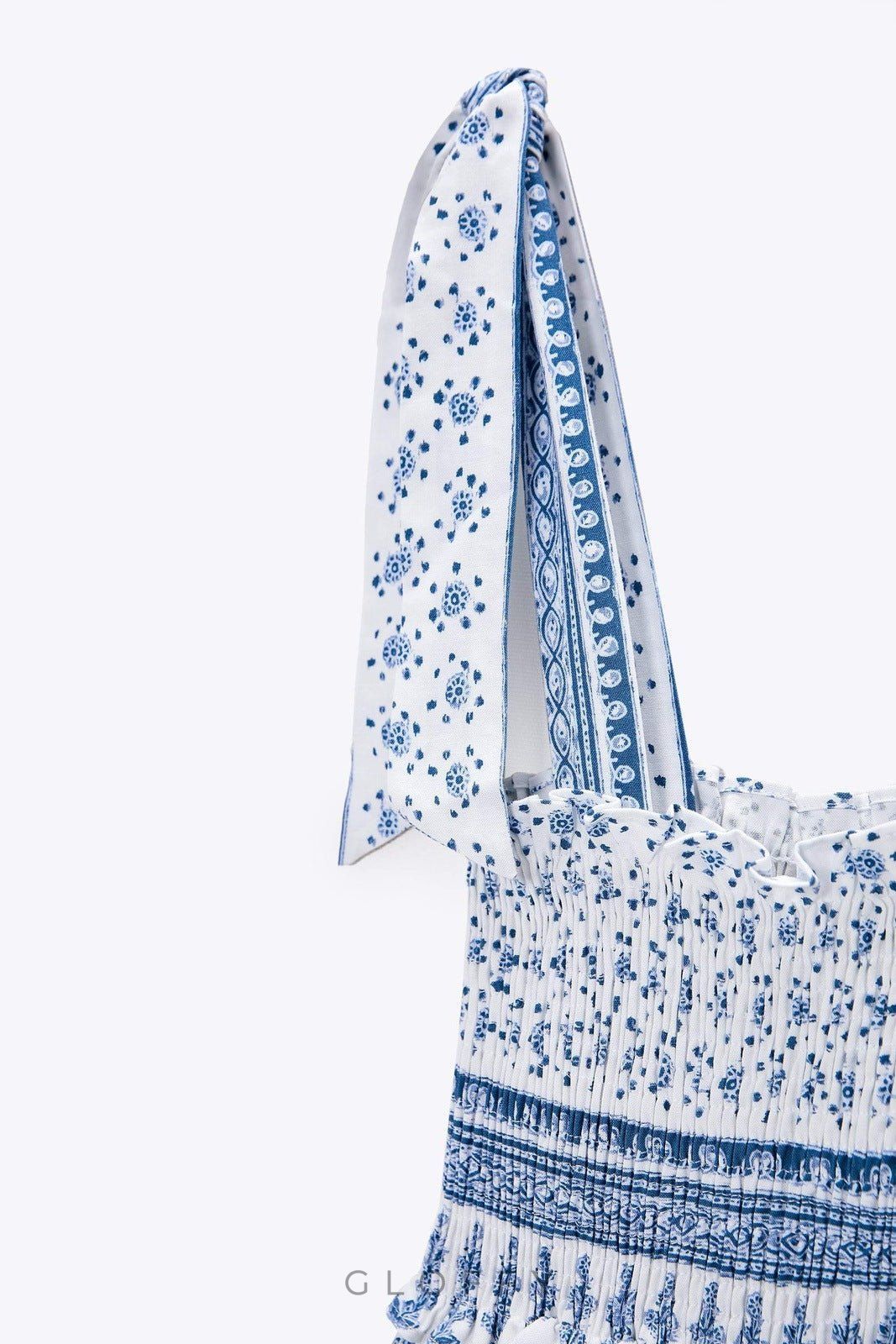 Helga Baskılı Büzgülü Askılı Midi Elbise