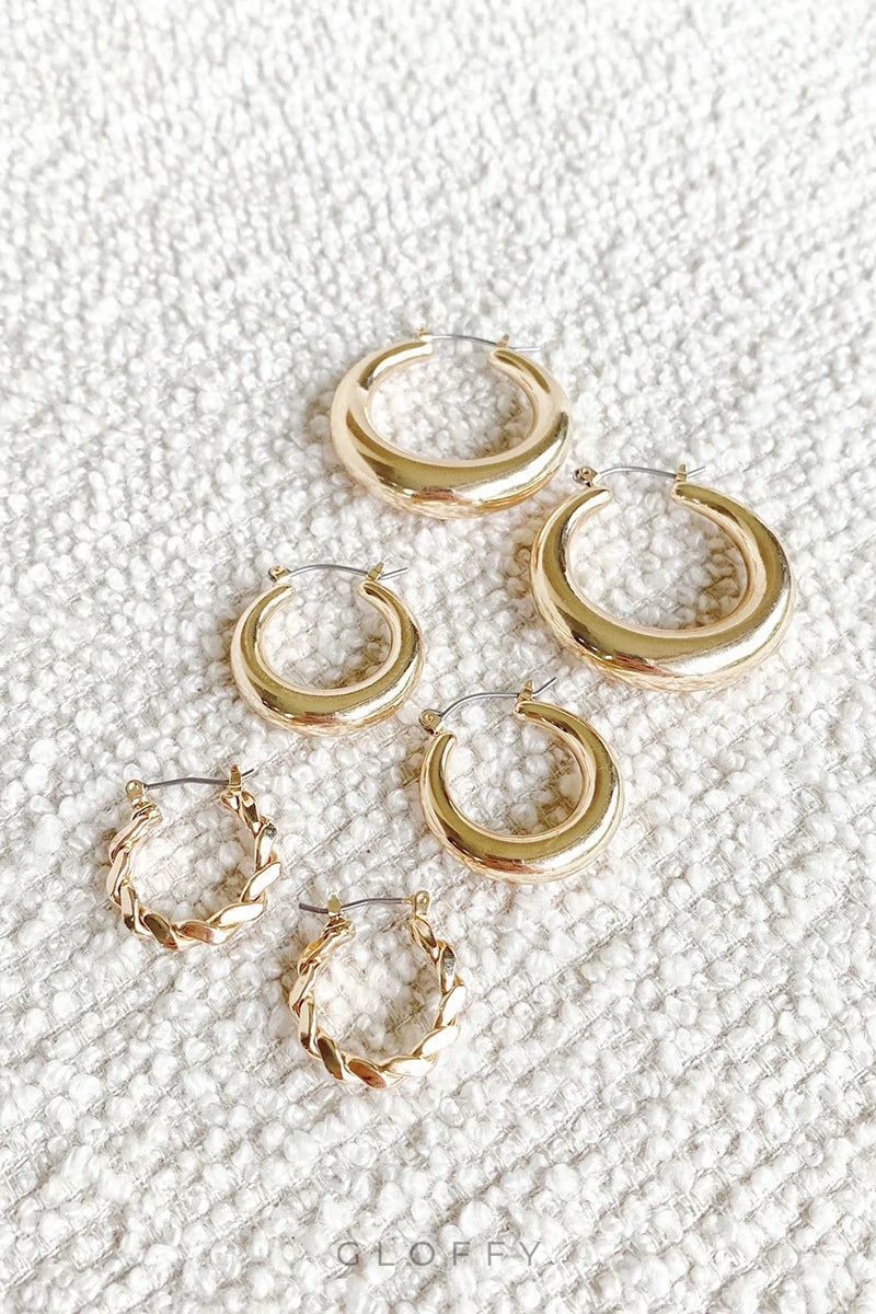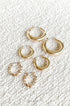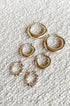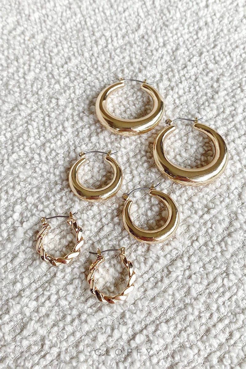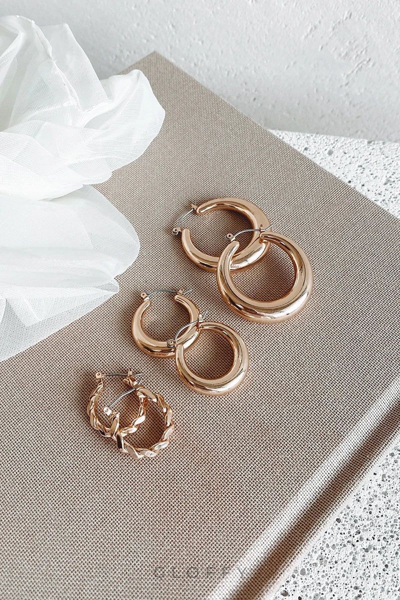 Altın renkli Klasik Halka Seti ile aksesuar oyununuzu yükseltin. Bu çok yönlü set, zarif bir dokunuş için büküm detaylı şık bir mini halkanın yanı sıra cesur bir ifade oluşturan iki büyük, kalın halkadan oluşuyor. Zengin altın kaplama, sofistike bir dokunuş katarak bu halkaları hem gündelik hem de resmi ortamlar için ideal hale getiriyor.
