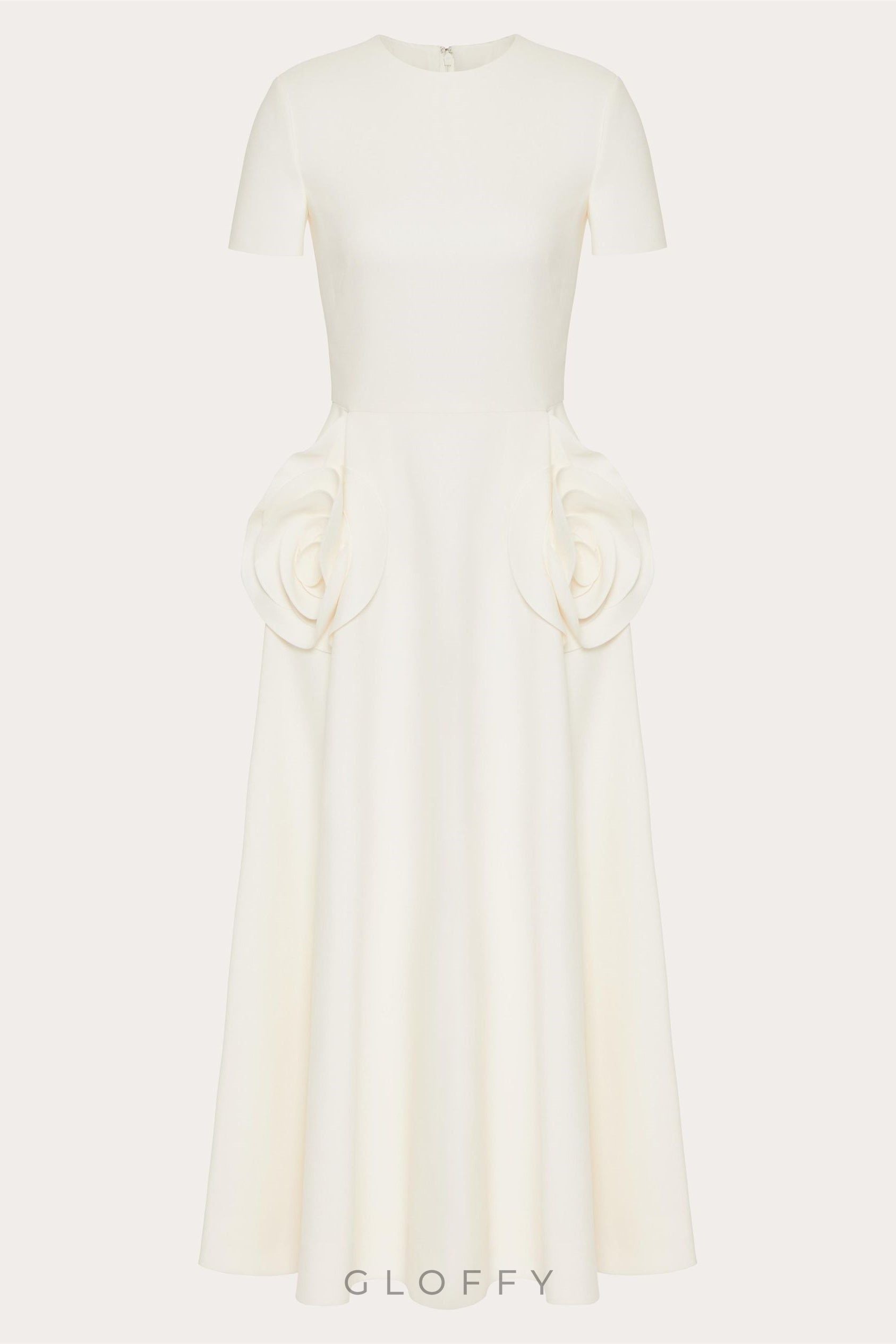 Jared Floral Aplike Kısa Kollu Midi Elbise