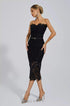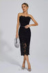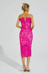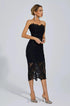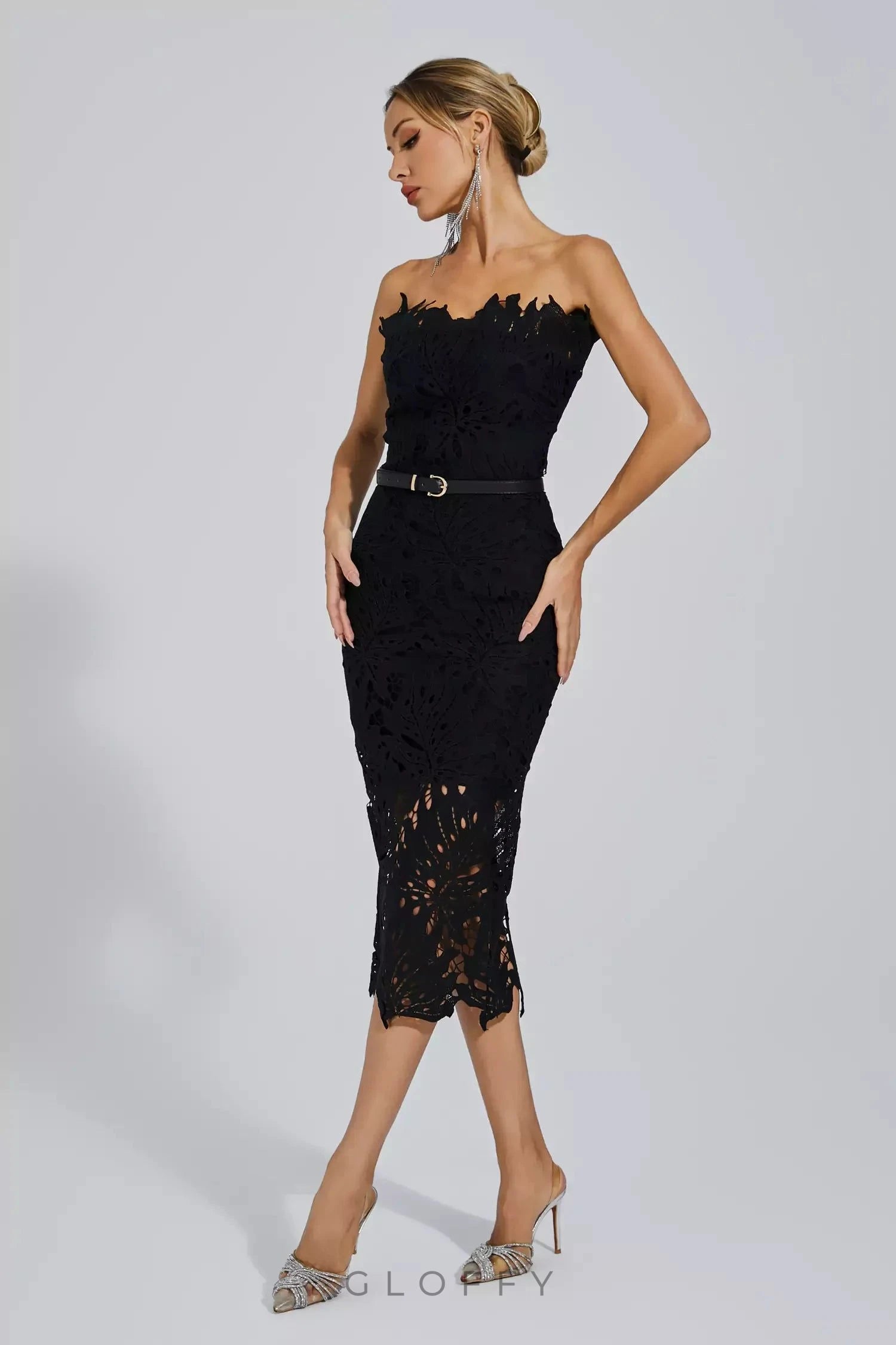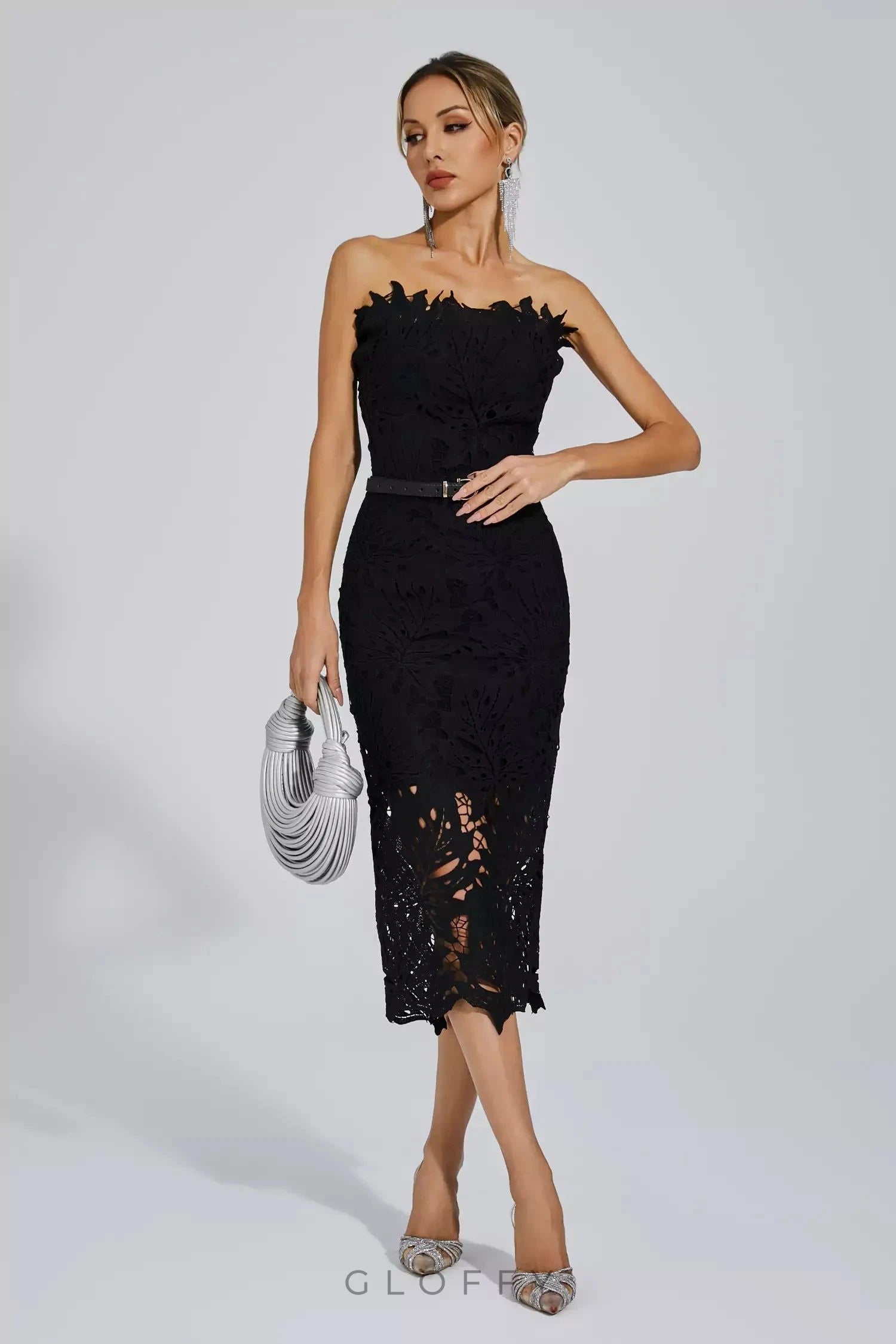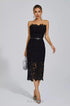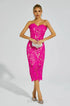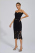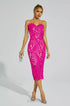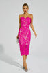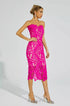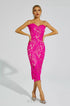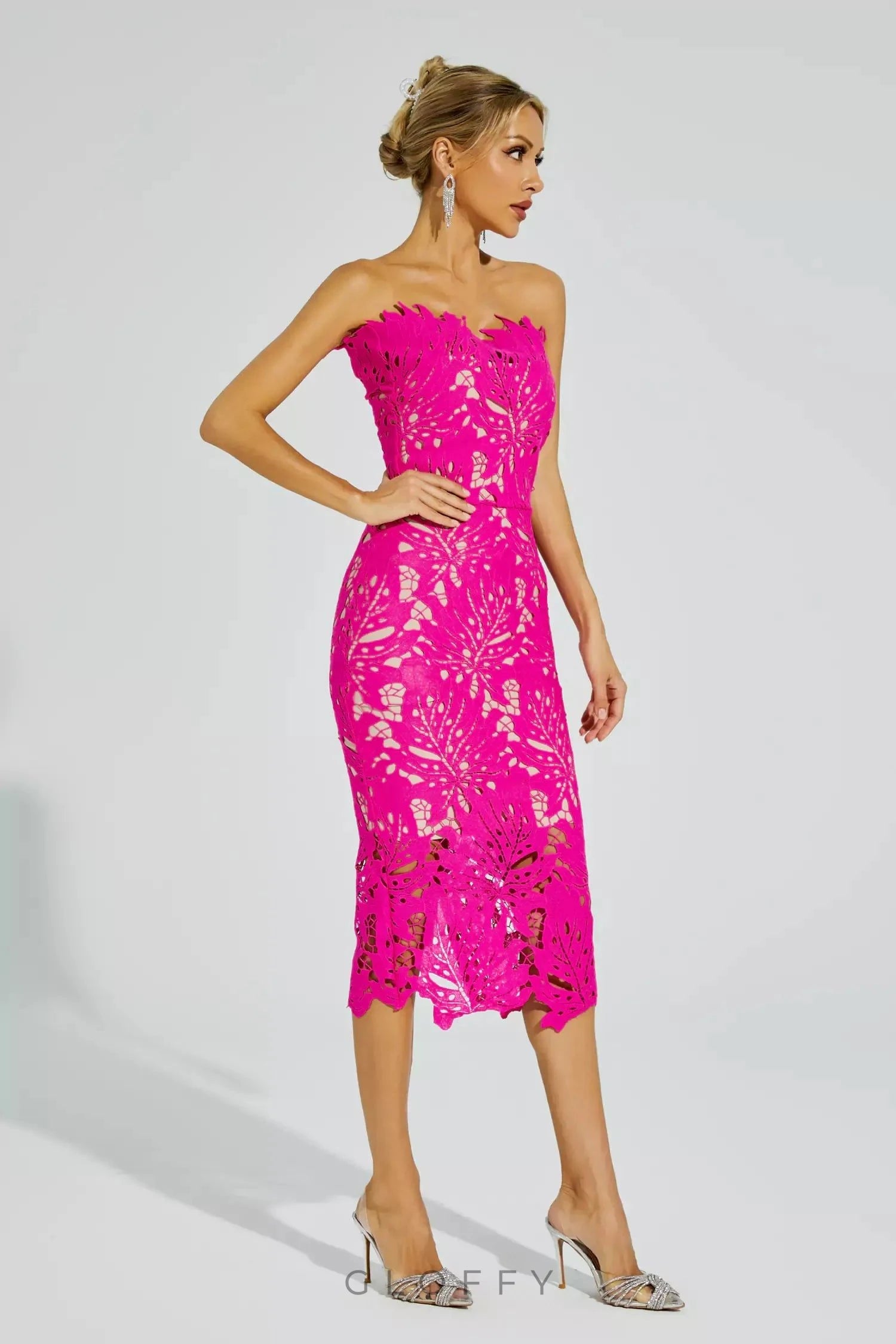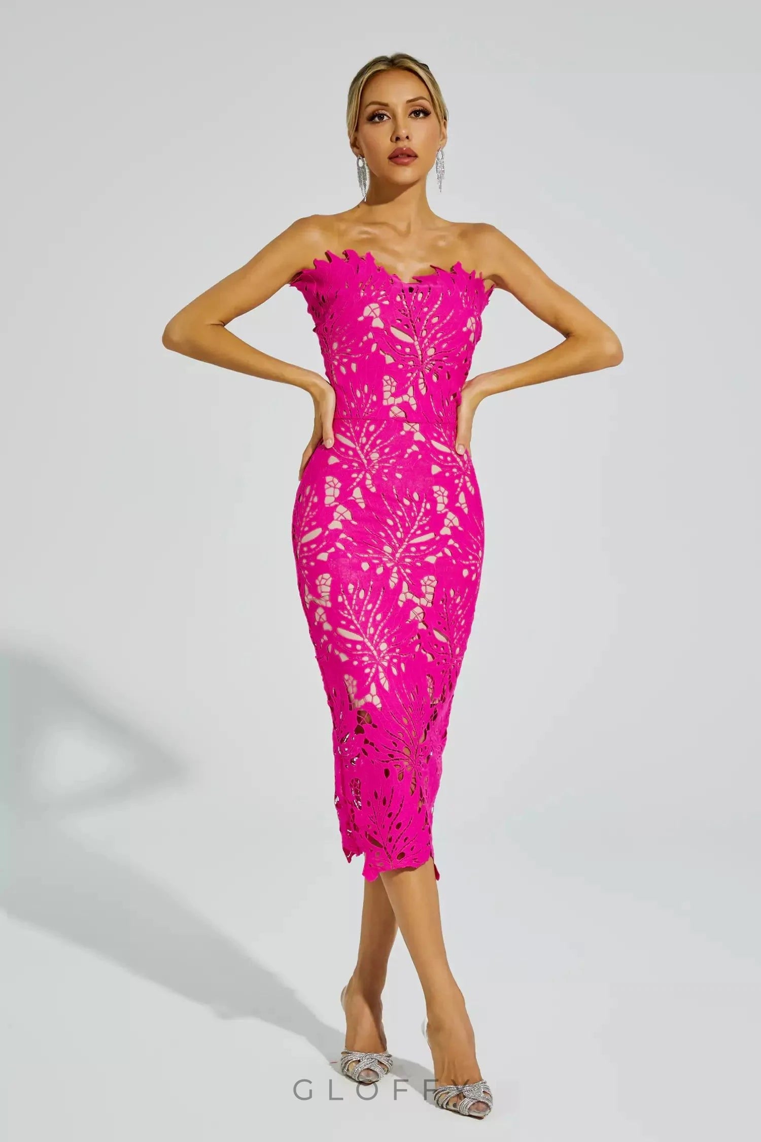 Jazlyn Pembe Dantel Çiçek Desenli Midi Elbise