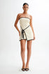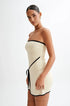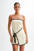 Çarpıcı asimetrik tasarıma ve kontrast astarlı kenarlara sahip bu askısız mini elbiseyle bakışları üzerinize çevirin. Yüksek esnekliğe sahip trikodan üretilen bu ürün, hoş bir uyum ve rahat bir kullanım sunar.