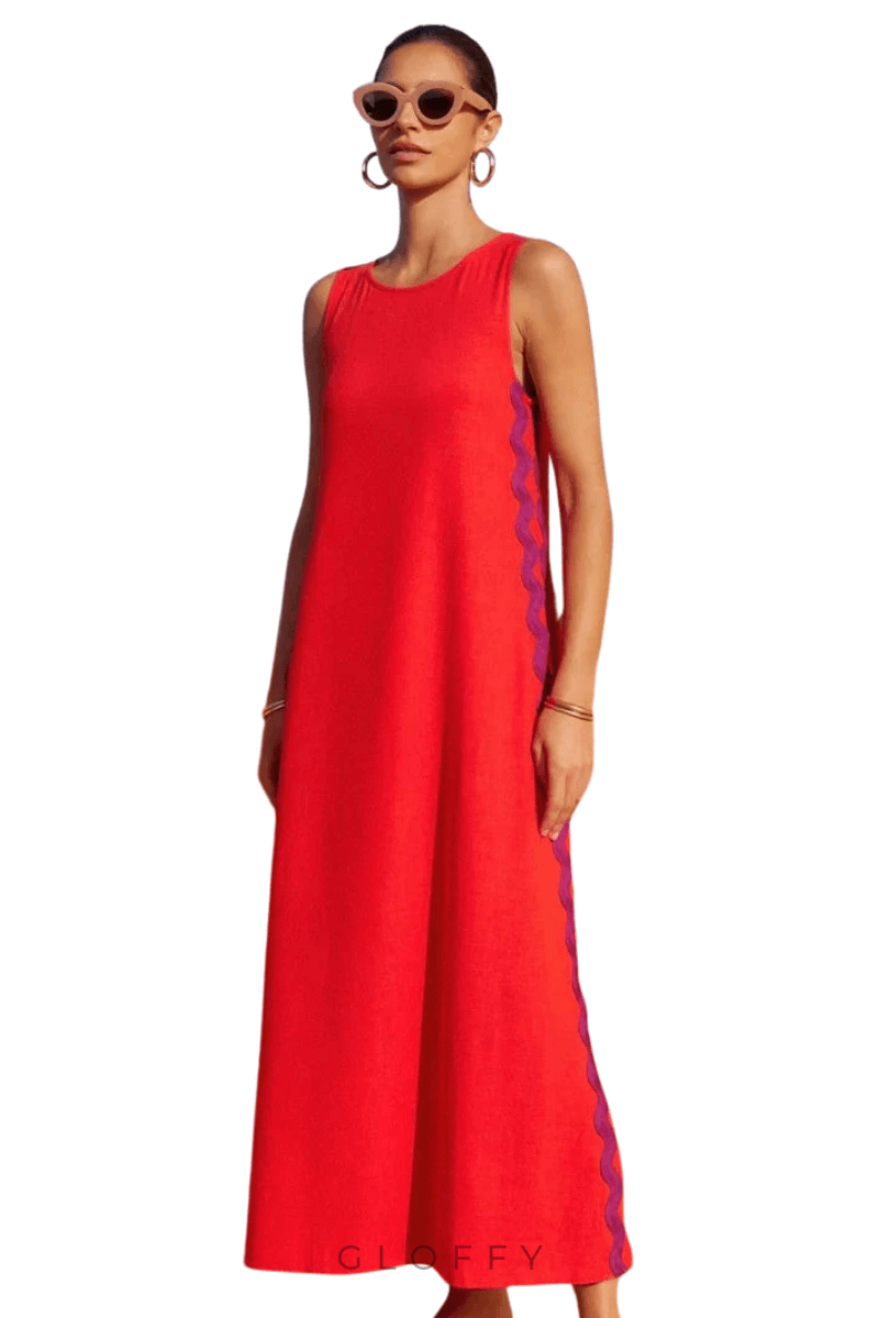 Bol ve rahat bir kesimle tasarlanan bu elbise, tarzdan ödün vermeden rahatlık sağlar. Her iki taraftaki yan bacak bölmeleriyle hareketi ve yeteneği artıran eğlenceli bir görünüm sunar. Yaz gezileri veya gündelik toplantılar için mükemmel olan bu uzun elbise, gardırobunuzun olmazsa olmaz bir parçası!