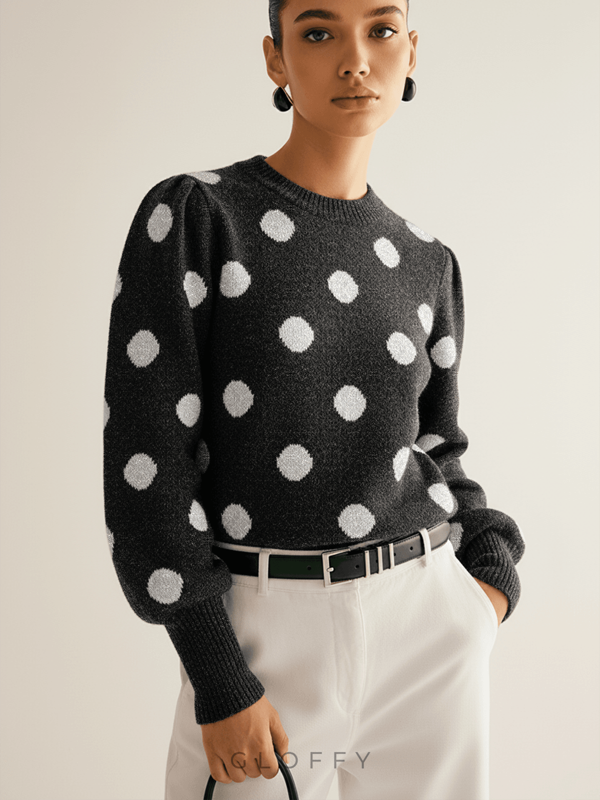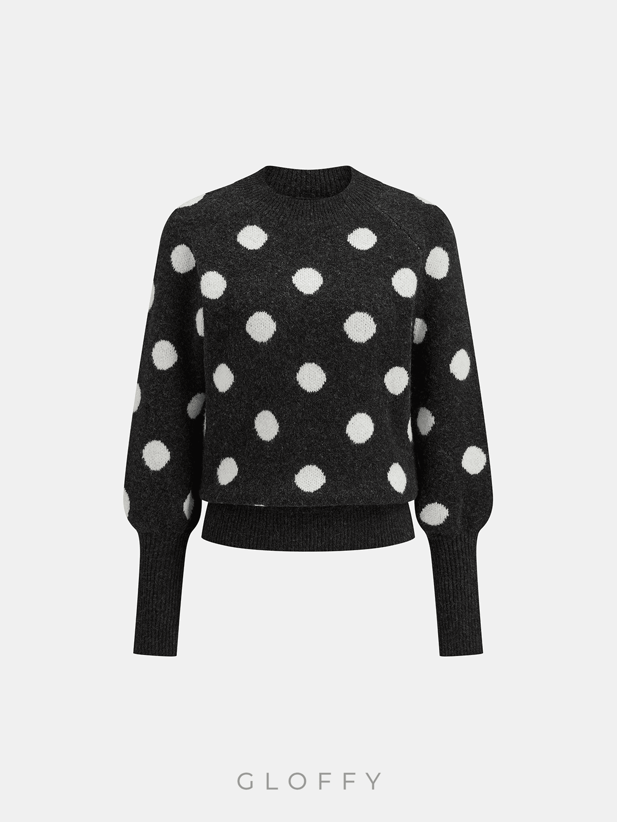 Kırk Yıl Kolu Puantiyeli Yün Karışımı Kazak