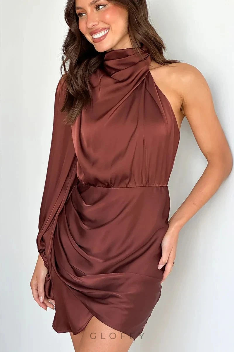 Solmira Tek Omuz Çiçek Aksesuarlı Maxi Elbise