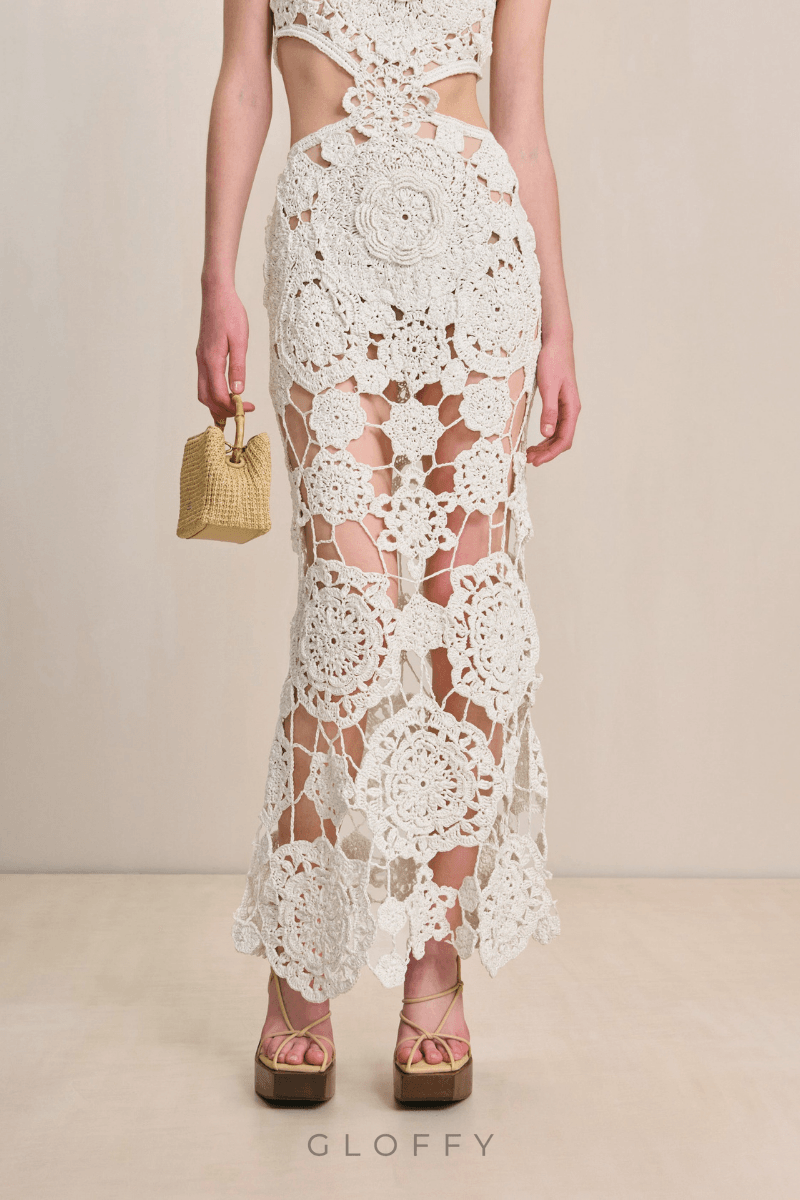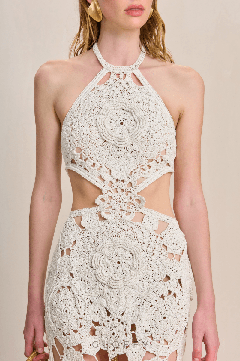 Mona Dantel İşlemeli Midi Örgü Elbise