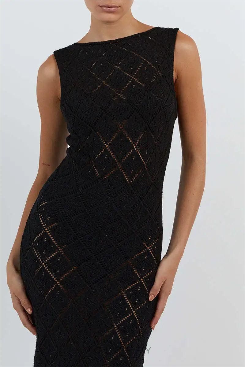 Mona Dantel İşlemeli Midi Örgü Elbise