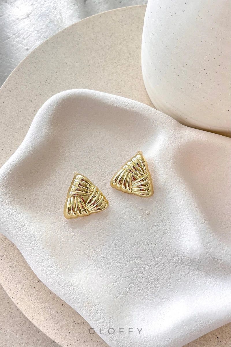 Üçgen Altın Kaplama Küpelerimizle tanışın. Dokulu metal detaylarla çarpıcı üçgen şekline sahip olan bu küpeler, her türlü kıyafete modern bir hava katıyor. Altın kaplama kaplama zarafetini artırırken, saplamalı arka kapatma güvenli ve rahat bir oturuş sağlar.