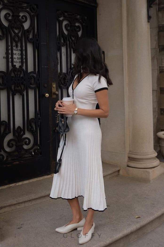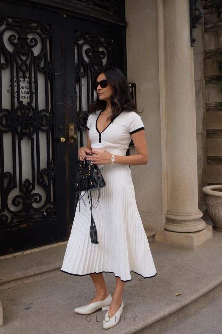 Marcia V Yaka Pileli Etek Takımı