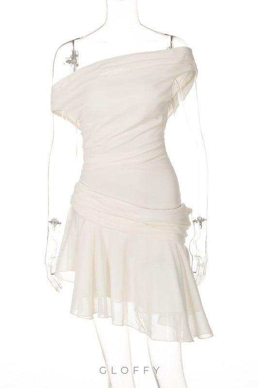 Bonnie Omuz Açık Volanlı Uzun Elbise