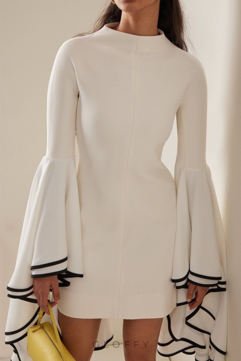 Abartılı çan kollu ve kontrast manşet şeritli Balıkçı Yaka Mini Elbisemizle tarzınızı yükseltin. Dar kesim tasarım, hoş bir siluet sunarken, orta streç polyester kumaş hem konfor hem de hareket sağlar.